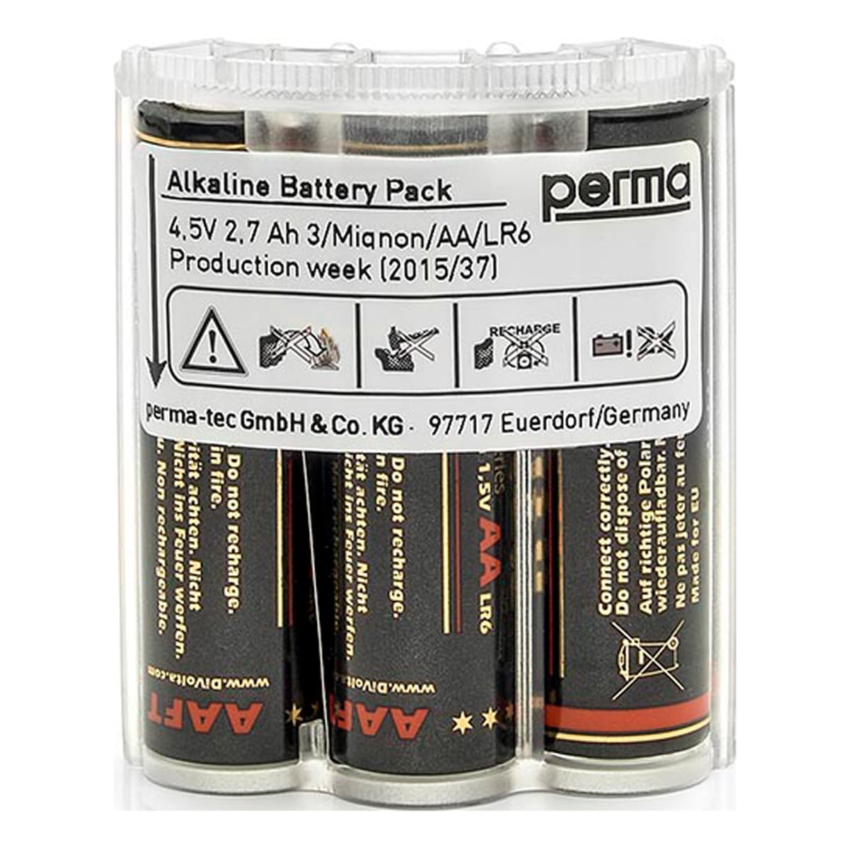 Das perma Batterieset wird beim perma Antrieb STAR VARIO eingesetzt. Das Set besteht aus 3 Stück 4,5 V Batterien und wird bei jedem Wechsel der LC-Einheiten (60 cm³, 120 cm³ oder 250 cm³) benötigt.