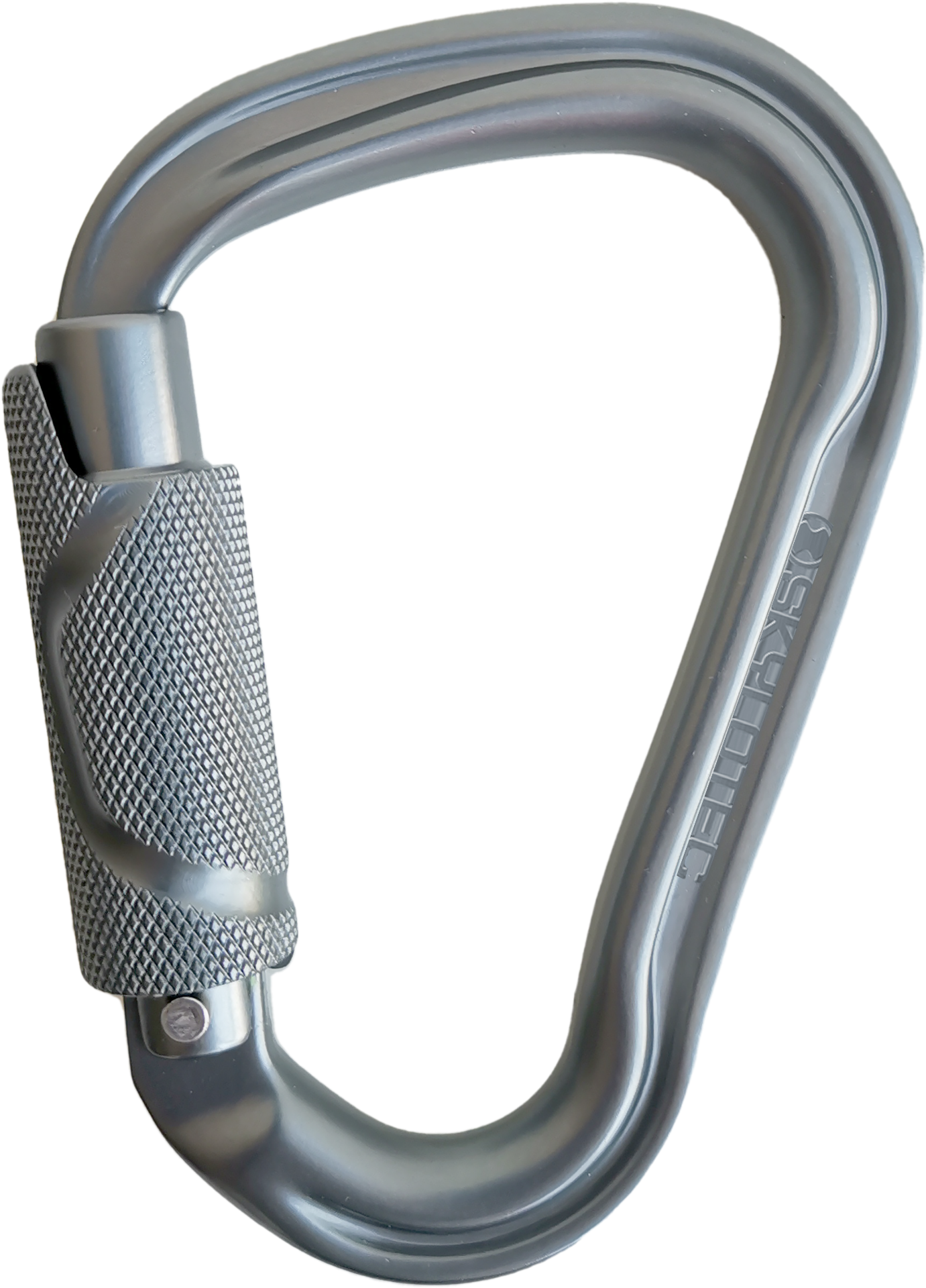 HMS-Karabiner aus leichtem Material mit breitem Scheitel und automatischem DOUBLE Triplelockverschluss, max. Gateöffnung von 24 mm