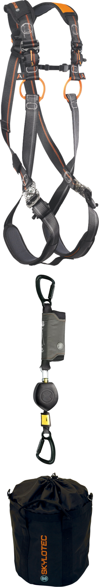 Dieses Set beinhaltet die Grundausstattung für ein sicheres Arbeiten auf Hubarbeitsbühnen und sollte bei Bedarf immer zur Hand sein: Der äußerst leichte und schnell anzulegende Auffanggurt IGNITE ION, den es in verschiedenen Größen gibt, sowie das kompakte Höhensicherungsgerät PEANUT bilden eine perfekte Einheit. Beides kann praktisch im ROPE BAG aufbewahrt werden.
