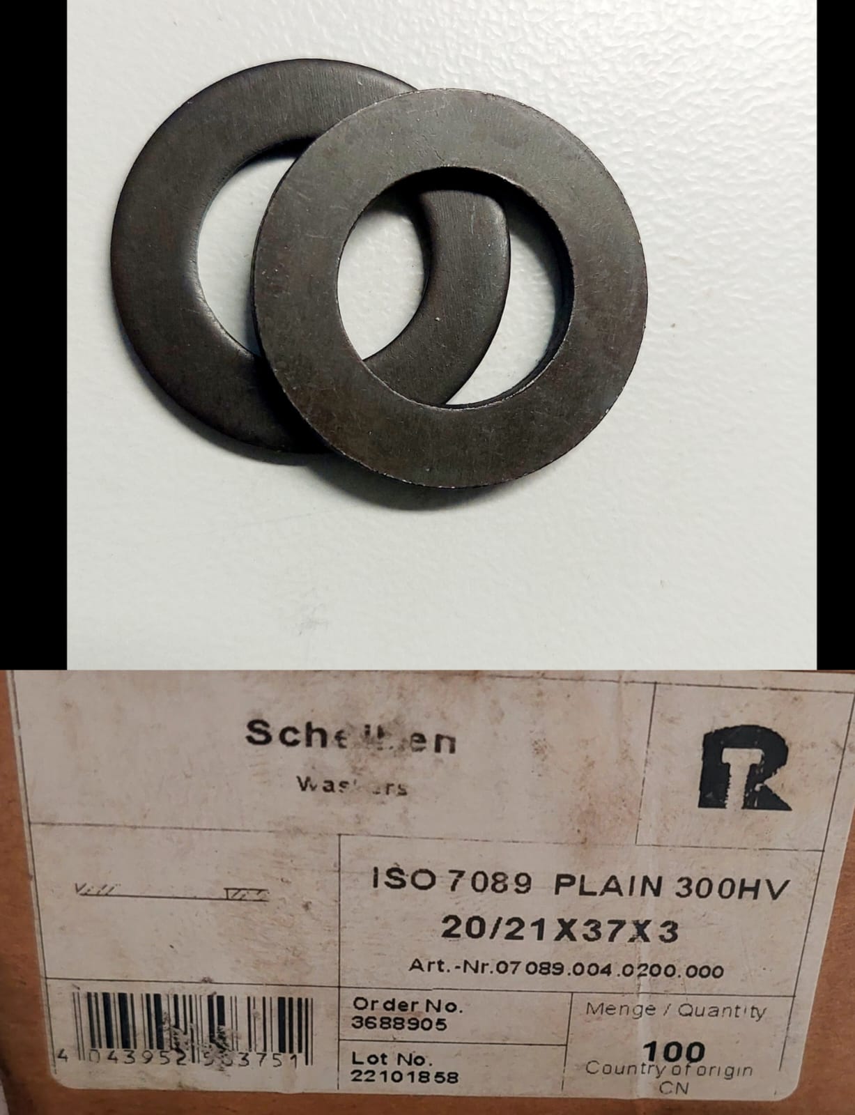 Produktinformationen "Unterlegscheiben 20/21x37x3 300 HV, schwarz"