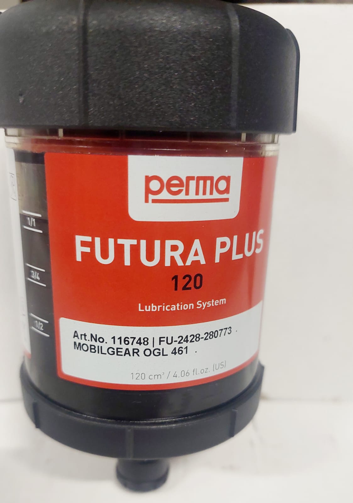 perma FUTURA PLUS ist in allen Anwendungsbereichen mit Umgebungstemperaturen von 0 bis +40 °C einsetzbar. Je nach Einsatzbedingungen wird ein Schmierstoffvolumen von 120 cm³ in 1, 3, 6 oder 12 Monaten gespendet. Die zuverlässige Funktionsweise basiert auf einer elektrochemischen Reaktion. Durch einfaches Drehen am Aktivierungsdeckel wird der elektrochemische Prozess gestartet. Der enthaltene Gaserzeuger generiert einen Druck von max. 4 bar, der den Schmierstoff in die Schmierstelle transportiert.